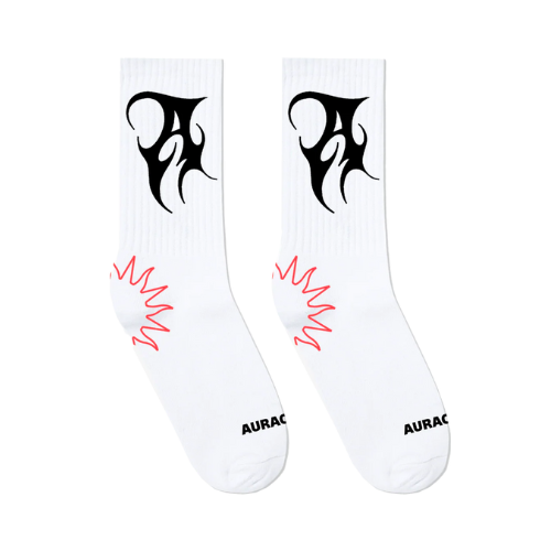 Take a step in style with the Auracle A Sock. Created for everyday comfort, this Auracle A Sock features a bold, graphic Auracle A logo. These Auracles fashion socks are a part of a limited streetwear drop with Chris Brown and John Dean. Made from premium cotton, they are the ultimate branded streetwear socks. Don't wait and buy your Auracle Sock online today.